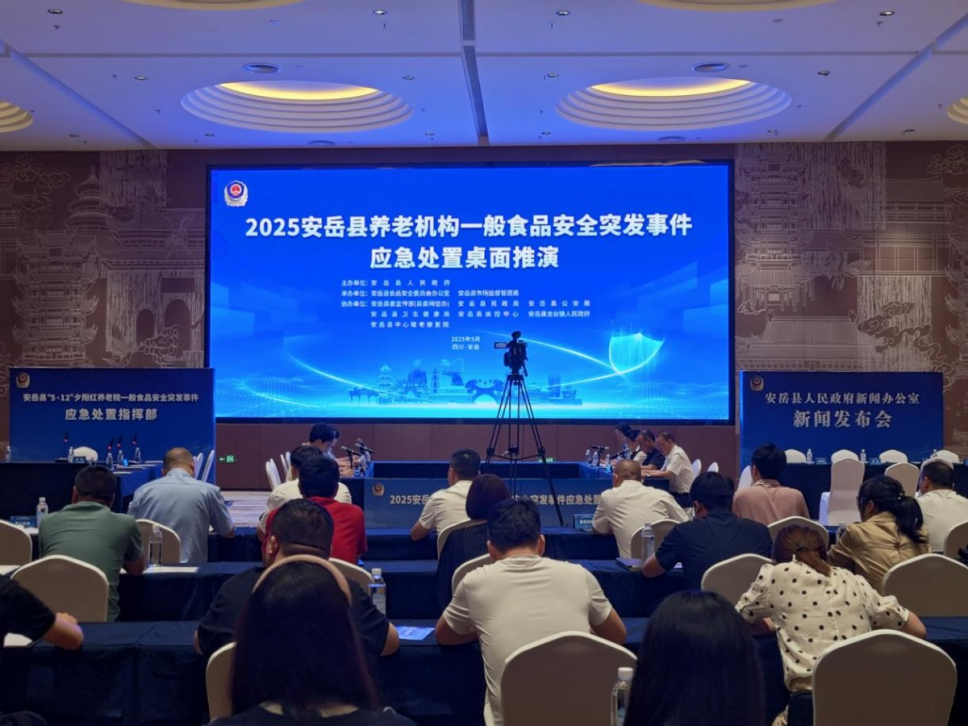 5月27日,四川省资阳市安岳县食物平安委员会办公室组织县食安委单元、乡镇(街道)分担带领和下层市场监管所担任同志及相关股室担任同志,成功开展“安岳县养老机构一般食物平安突发事务应急措置桌面推演”。此次练习训练旨正在全面查验全县食物平安突发事务应急预案的可行性和无效性,熬炼应急步队,磨合应急机制,无效地进行措置。