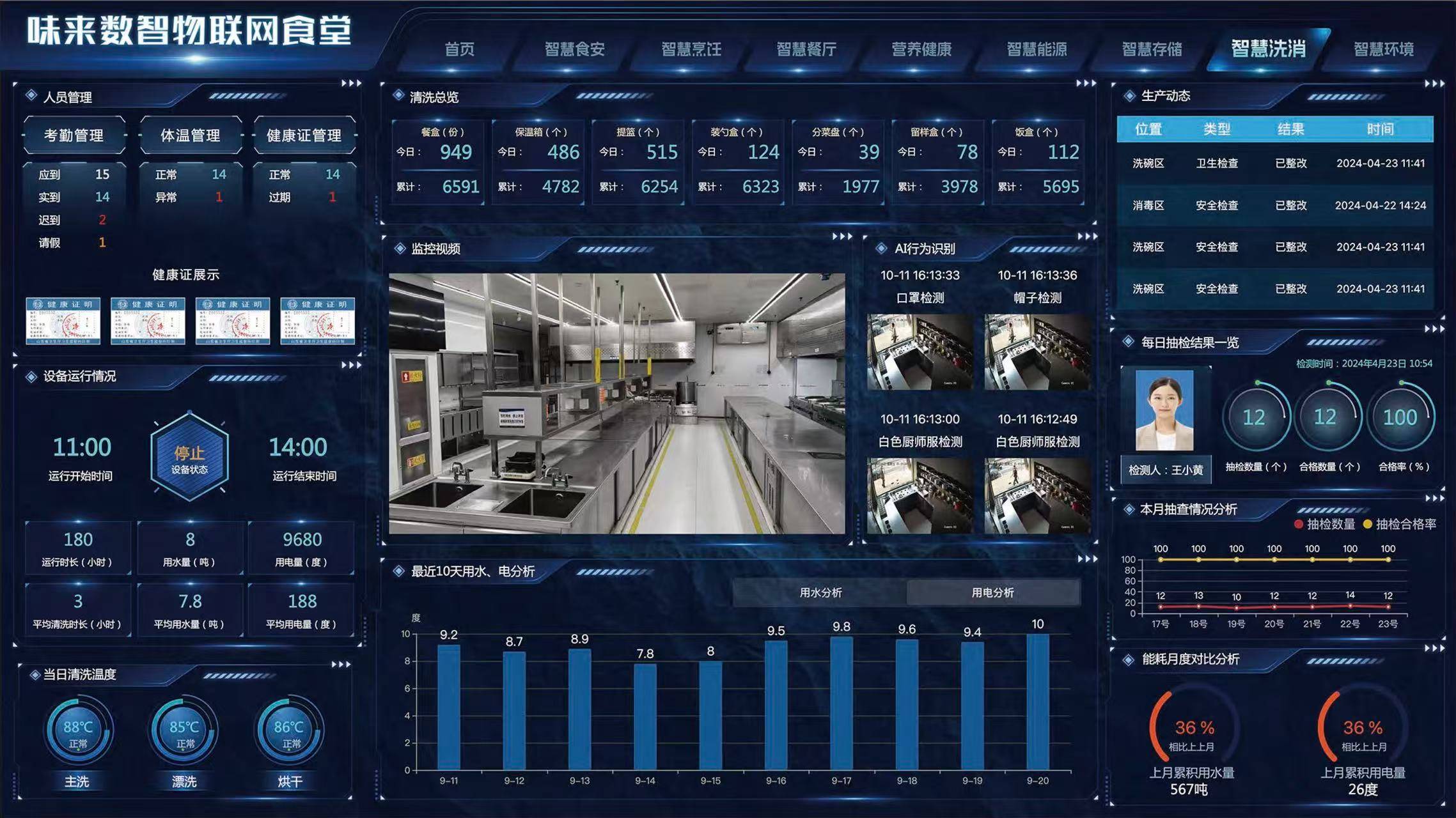 正在食安办理方面,味来数智食堂全面进行出产、人员和食物的,大幅削减出产变乱和食物变乱,打制平安食堂;食材从采购、检测、存储、加工、烹调到售卖,全程溯源、低油低盐,打制健康食堂。同时,多角度进行节能减排管控,大幅削减能源耗损取排放,削减粮食华侈,打制绿色食堂;全场景化的物联网、互联网和通信网互通,将多个数据孤岛进行联通,打制数智食堂;各品类从动化设备和智能化设备,降本增效,保障出品,提拔合作力,打制聪慧食堂。